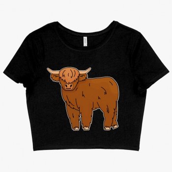 Women's Cropped Highland Cow T-Shirt - Cute Animal T-Shirt