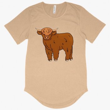 Men's Highland Cow T-Shirt with Curved Hem - Cute Animal T-Shirt