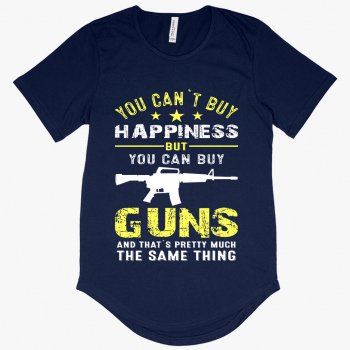 Men's You Can’t Buy Happiness T-Shirt with Curved Hem - Gun Rights T-Shirts - Gun Owner T-Shirt