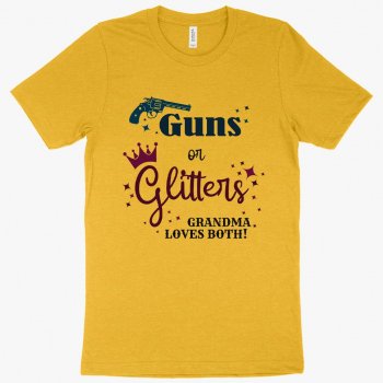 Heavy Cotton Guns or Glitters Grandma Loves Both T-Shirt - Gender Reveal T-Shirts for Grandparents - T-Shirts for Grandma