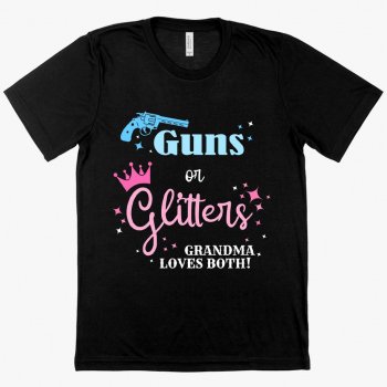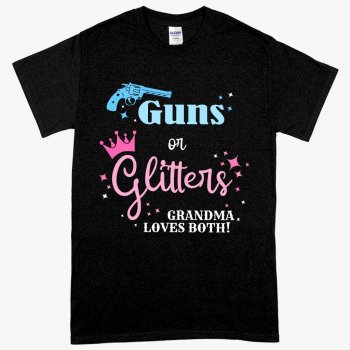 Viscose Guns or Glitters Grandma Loves Both T-Shirt - Gender Reveal T-Shirts for Grandparents - T-Shirts for Grandma