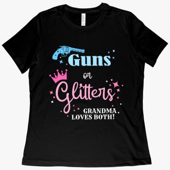 Women's Guns or Glitters Grandma Loves Both T-Shirt - Gender Reveal T-Shirts for Grandparents - T-Shirts for Grandma