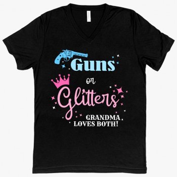 V-Neck Guns or Glitters Grandma Loves Both T-Shirt - Gender Reveal T-Shirts for Grandparents - T-Shirts for Grandma