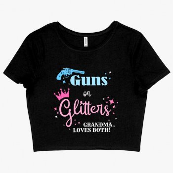 Women's Cropped Guns or Glitters Grandma Loves Both T-Shirt - Gender Reveal T-Shirts for Grandparents - T-Shirts for Grandma