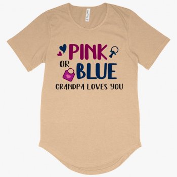 Men's Pink or Blue Your Grandpa Loves You T-Shirt with Curved Hem - Gender Reveal T-Shirts for Grandparents - T-Shirts for Grandpa