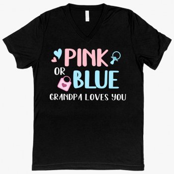 V-Neck Pink or Blue Your Grandpa Loves You T-Shirt - Gender Reveal T-Shirts for Grandparents - T-Shirts for Grandpa