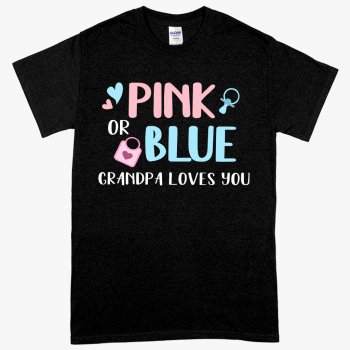 Pink or Blue Your Grandpa Loves You T-Shirt - Gender Reveal T-Shirts for Grandparents - T-Shirts for Grandpa