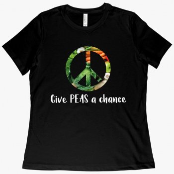 Women's Give Peas a Chance Funny Vegan T-Shirt - Vegan Print T-Shirt - Vegetarian Funny T-Shirts