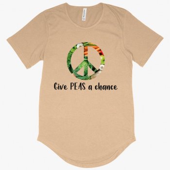 Men's Give Peas a Chance Funny Vegan T-Shirt with Curved Hem - Vegan Print T-Shirt - Vegetarian Funny T-Shirts