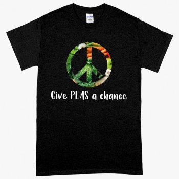 Give Peas a Chance Funny Vegan T-Shirt - Vegan Print T-Shirt - Vegetarian Funny T-Shirts