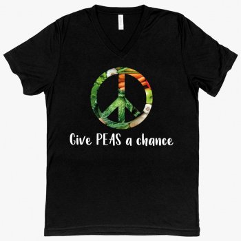 V-Neck Give Peas a Chance Funny Vegan T-Shirt - Vegan Print T-Shirt - Vegetarian Funny T-Shirts