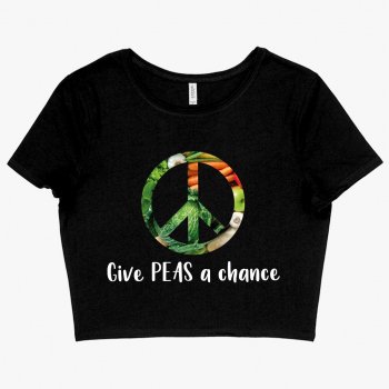 Women's Cropped Give Peas a Chance Funny Vegan T-Shirt - Vegan Print T-Shirt - Vegetarian Funny T-Shirts