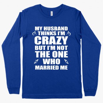 My Husband Thinks I’m Crazy Long Sleeve T-Shirt - Funny Husband Wife T-Shirts