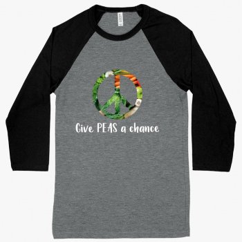 Give Peas a Chance Funny Vegan Baseball T-Shirt - Vegan Print T-Shirt - Vegetarian Funny T-Shirts