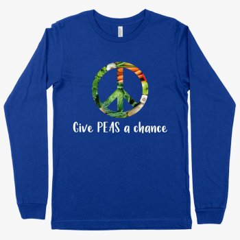 Give Peas a Chance Funny Vegan Long Sleeve T-Shirt - Vegan Print T-Shirt - Vegetarian Funny T-Shirts