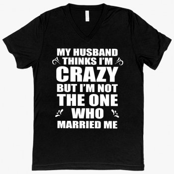 V-Neck My Husband Thinks I’m Crazy T-Shirt - Funny Husband Wife T-Shirts
