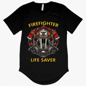 Men's Firefighter Life Saver T-Shirt with Curved Hem - Firefighter Design T-Shirt - Firefighter Apparel