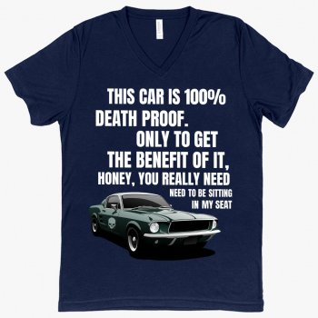 V-Neck This Car Is 100% Death Proof T-Shirt - Death Proof Movie T-Shirt