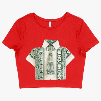 Women's Cropped Dollar Origami T-Shirt - Money Origami