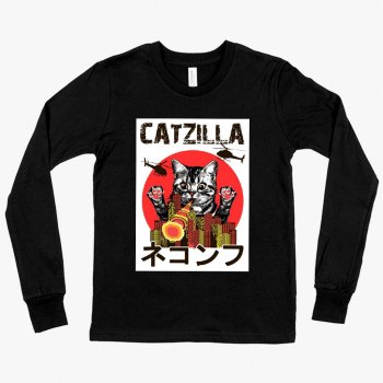 Kids' Catzilla Long Sleeve T-Shirt - Japanese Vintage T-Shirt