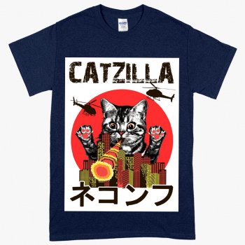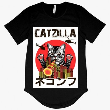 Men's Catzilla T-Shirt with Curved Hem - Japanese Vintage T-Shirt