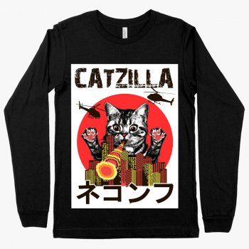 Catzilla Long Sleeve T-Shirt - Japanese Vintage T-Shirt