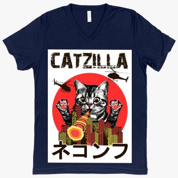 V-Neck Catzilla T-Shirt - Japanese Vintage T-Shirt
