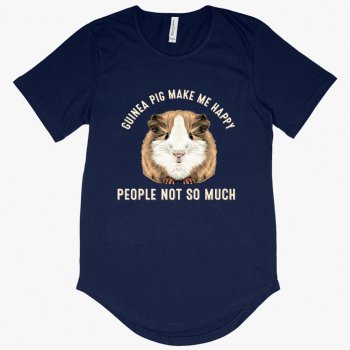 Men's Guinea Pig Make me Happy T-Shirt with Curved Hem - Guinea T-Shirt - Funny Animal T-Shirt