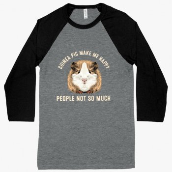 Guinea Pig Make me Happy Baseball T-Shirt - Guinea T-Shirt - Funny Animal T-Shirt