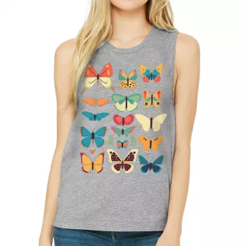 Butterfly Print Women's Muscle Tank - Cute Graphic Tank Top - Best Print Workout Tank