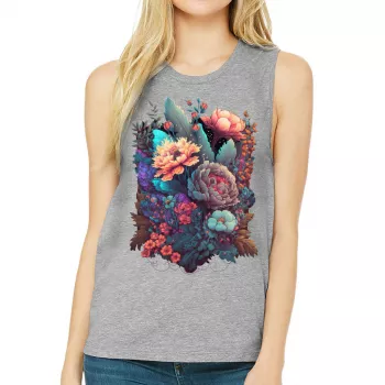 Flower Graphic Women's Muscle Tank - Cute Tank Top - Digital Art Workout Tank