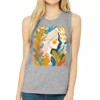 Floral Design Women's Muscle Tank - Cool Graphic Tank Top - Illustration Workout Tank
