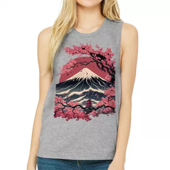 Japan Art Women's Muscle Tank - Blossom Tank Top - Landscape Workout Tank