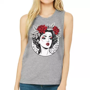 Skull Graphic Women's Muscle Tank - Gothic Tank Top - Cool Art Workout Tank