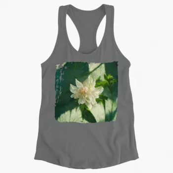 White Dahlia Flower Racerback Tank - Art Tank - Printed Workout Tank