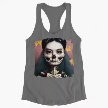 Skeleton Print Racerback Tank - Halloween Themed Tank - Creepy Girl Workout Tank