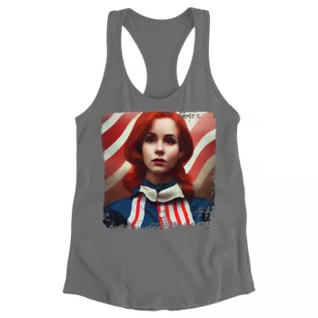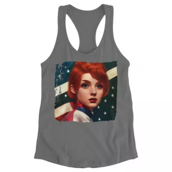 Girl Red Hair American Racerback Tank - Patriotic Tank - Art Workout Tank