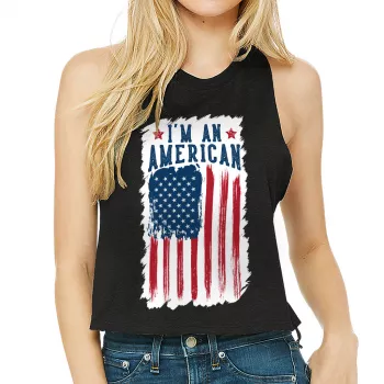 I am an American Racerback Cropped Tank - USA Flag Women's Tank - Patriotic Tank Top