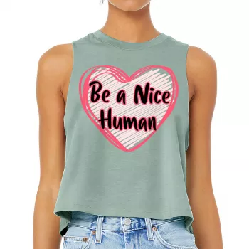 Be a Nice Human Racerback Cropped Tank - Heart Print Women's Tank - Graphic Tank Top