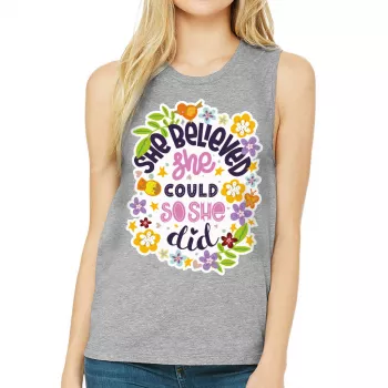 She Believed She Could So She Did Women's Muscle Tank - Inspirational Tank Top - Printed Workout Tank