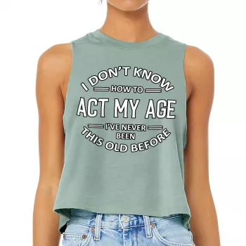 I Don't Know How to Act My Age Racerback Cropped Tank - Sarcastic Women's Tank - Funny Tank Top