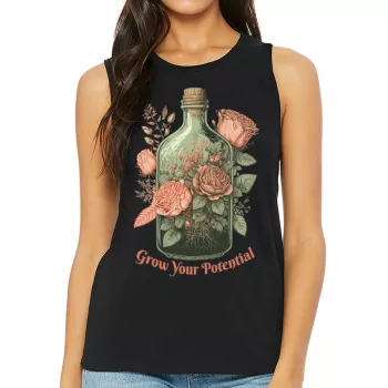 Roses Women's Muscle Tank - Grow Your Potential Tank Top - Graphic Workout Tank