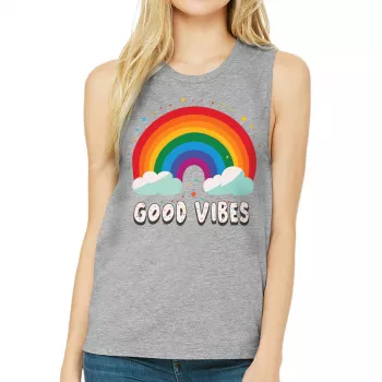 Good Vibes Women's Muscle Tank - Rainbow Tank Top - Colorful Workout Tank