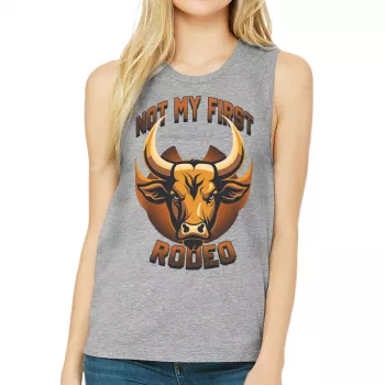 Not My First Rodeo Women's Muscle Tank - Bull Design Tank Top - Cool Graphic Workout Tank