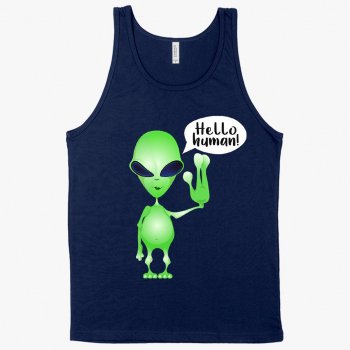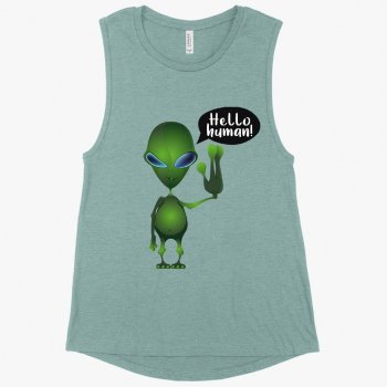 Women's Muscle Hello Human Tank - Alien Tank