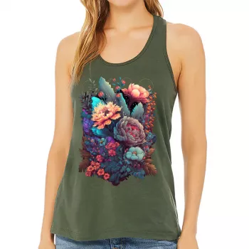 Flower Graphic Women's Racerback Tank - Cute Tank Top - Digital Art Workout Tank