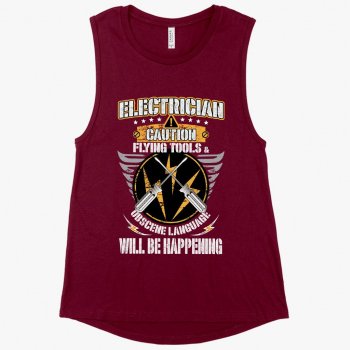 Women's Muscle Electrician Caution Tank - Electrician Tank Design