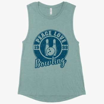 Women's Muscle Peace Love Bowling Tank - Bowling Tank Design - Bowling Themed Tanks