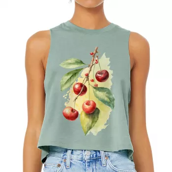 Cherry Print Racerback Cropped Tank - Cute Women's Tank - Themed Tank Top