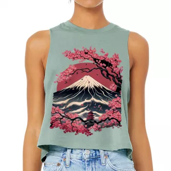 Japan Art Racerback Cropped Tank - Blossom Women's Tank - Landscape Tank Top